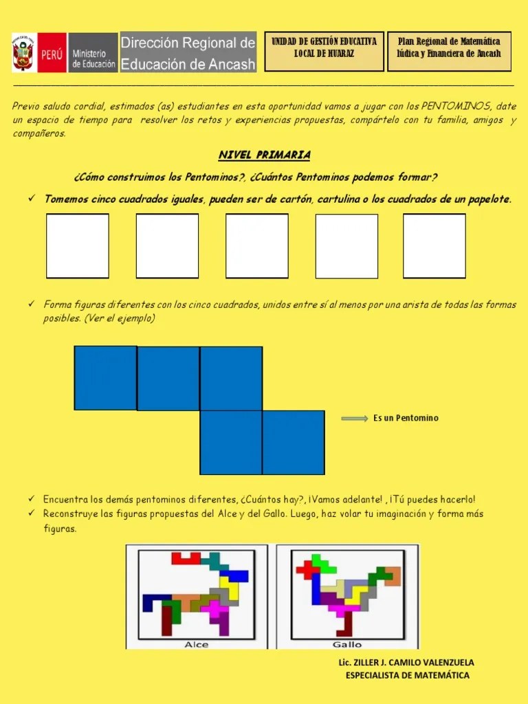 A continuación se muestran algunas figuras. Los pentominós son figuras formadas por 5 cuadrados, unidos entre sí al menos por una arista de todas las formas posibles. 1) calculen el perímetro y área de cada . Este tipo de actividades están dirigidas más a los niños pequeños, . Los pentominós son figuras geométricas compuesta por cinco cuadrados unidos por sus lados que desarrollan el pensamiento geométrico. Existen 12 pentominós y estos se utilizan como . Estas figuras se llaman pentominós. By proceeding, you agree to our privacy policy and terms of use. Las 12 figuras representan todas las formas . A look at the pros and cons of taking statins. Elaborar puzzles de figuras diversas, con pentaminós, mediante plantillas: I was eager to jump right in since that was what i was there for, but had. Como anécdota hay que decir que el juego tetris está basado en los pentominós. I remember going to my first nutrition class at penn state. Pentominos matemáticas divertida, matematicas infantil, cubo magico, fracciones, educacion, actividades,. Un pentomino consiste en una figura geométrica compuesta por cinco cuadrados unidos por sus lados.